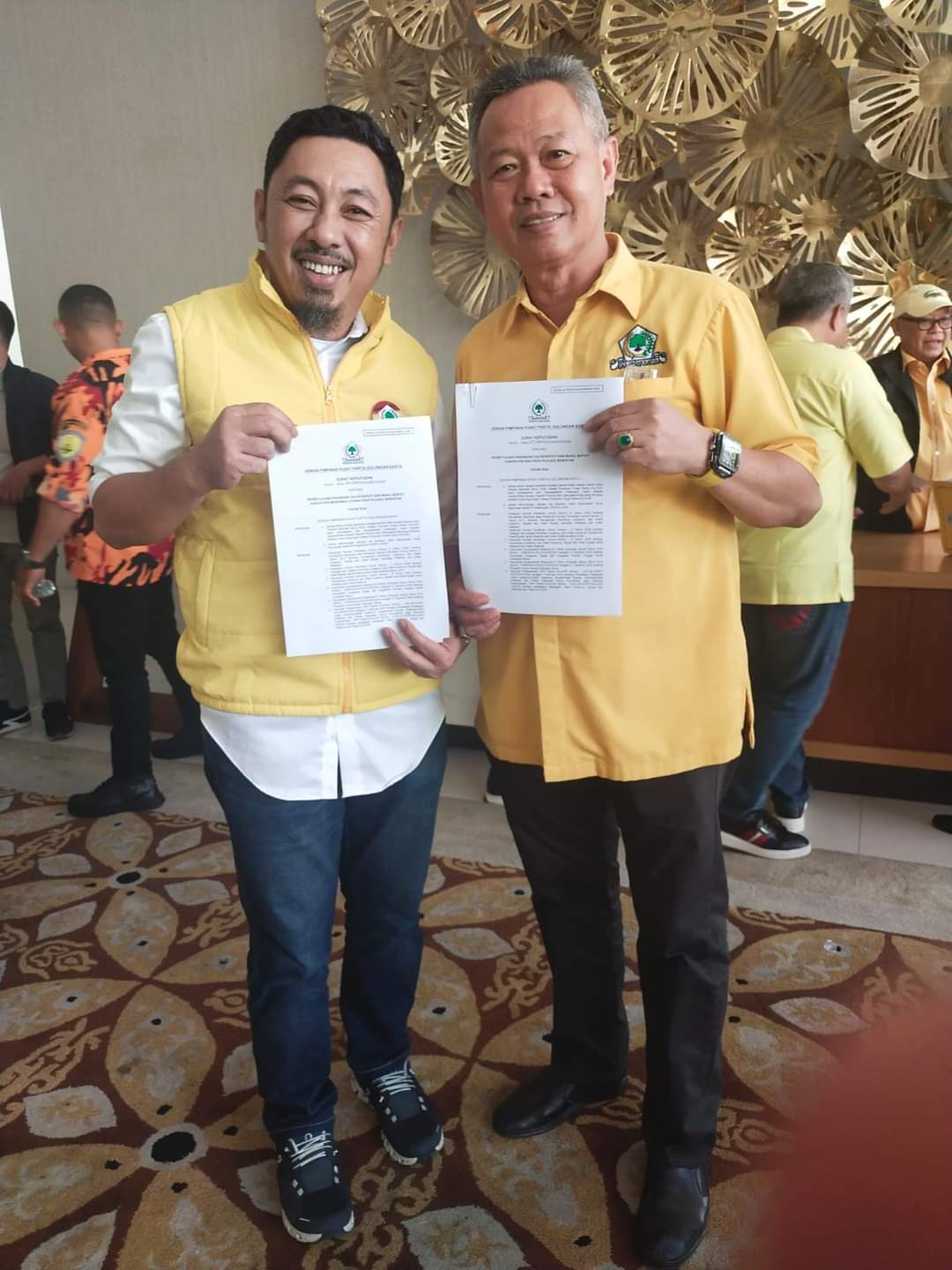 Dokomen B1-KWK Partai Golkar diterima langsung Jeffisa Putra Amrullah dari Ketua DPD I Partai Golkar Sulawesi Tengah (Sulteng), Arus Abdul Karim di Kantor DPP Golkar, Minggu (25/8/2024).
