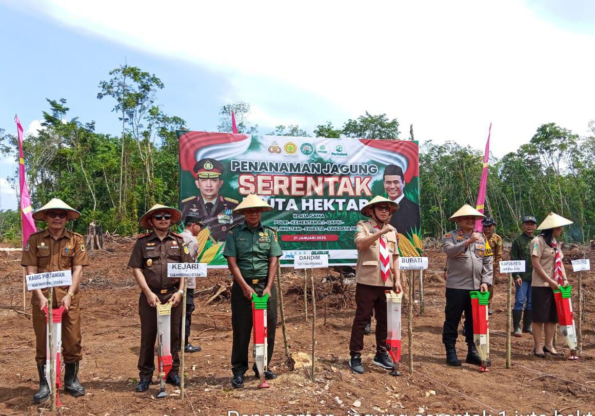 Morowali Utara – Dalam rangka mendukung program ketahanan pangan nasional, Danramil 1311-04/Lembo Kapten Inf Muhar turut berpartisipasi dalam kegiatan penanaman jagung serentak 1 juta hektar yang dilaksanakan di Desa Korobonde, Kecamatan Lembo, Kabupaten Morowali Utara, Selasa (21/01/2025).