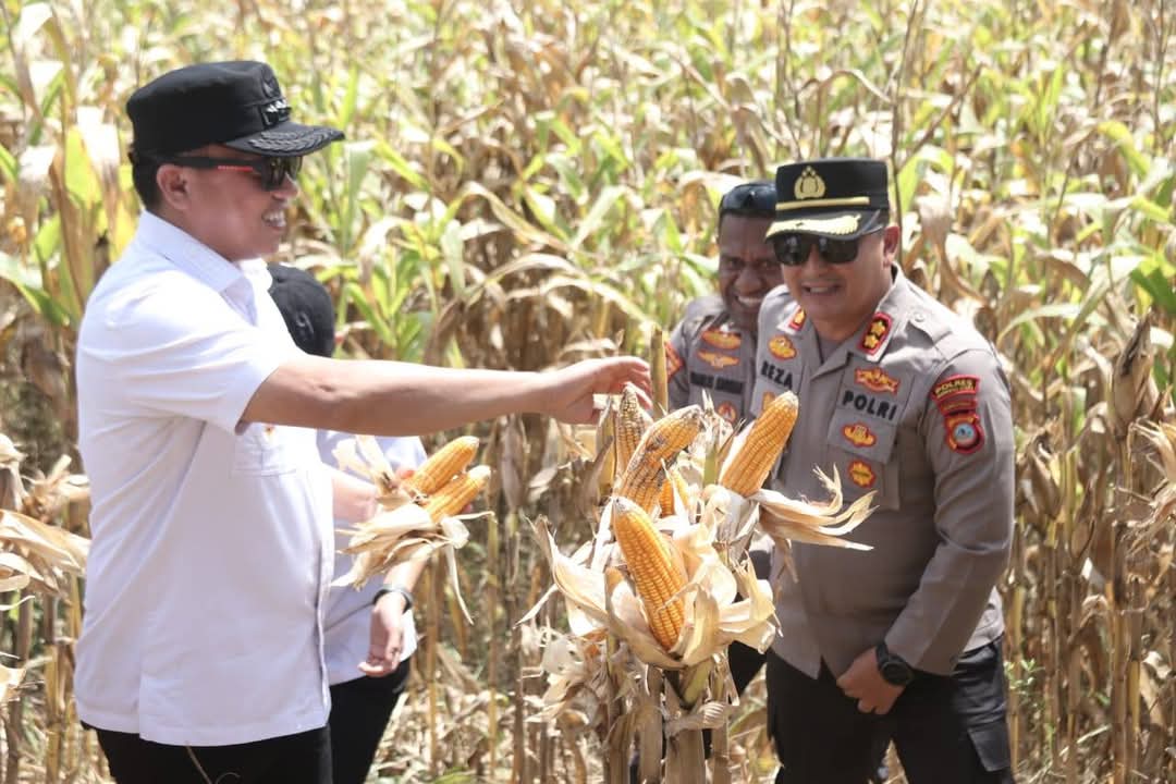 Kapolres Morowali Utara AKBP Reza Khomeini,SIK bersama Forkopimda Morowali Utara panen jagung. Kegiatan dilakukan di Desa Taende Kecamatan Mori Atas. Kamis (5/6/2025)