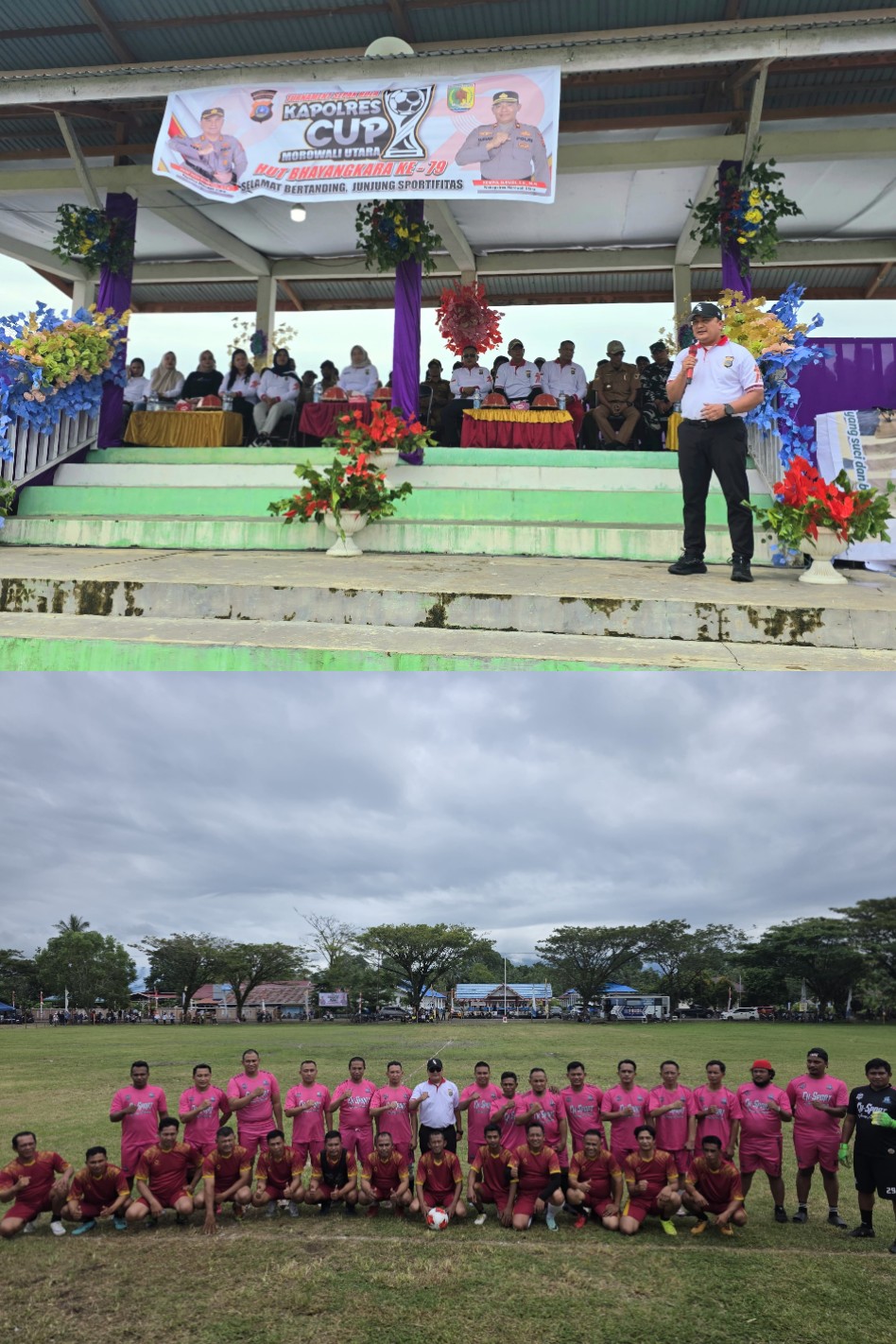 Kapolres Morowali Utara, AKBP Reza Khomeini, S.I.K. menyampaikan turnamen merupakan bagian dari rangkaian peringatan Hari Bhayangkara yang bertujuan untuk mempererat tali silaturahmi antara Polri dan masyarakat.