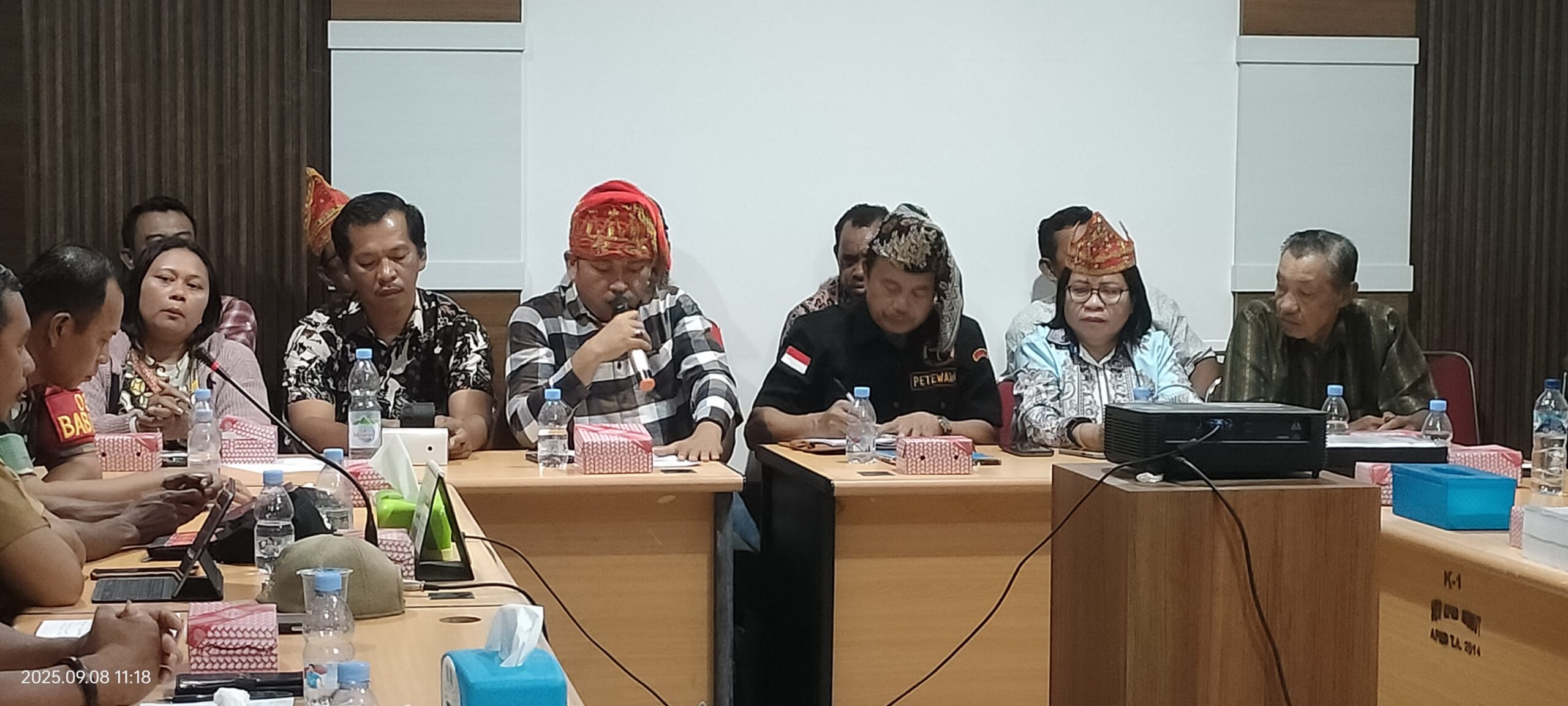Morowali Utara, Menggelar Rapat Dengar Pendapat (RDP), menindaklanjuti Surat dari Kerukunan Keluarga Mori Tongku Towatu (KKMTT) Morut/ VII/ 2025 tanggal 30 Juli 2025, sehubungan Petisi Hasil Musyawarah Luar Biasa Lembaga-Lembaga Adat Tongku Towatu yang disampaikan saat aksi Demonstrasi sebelumnya, diruang Komisi I DPRD Morowali Utara , Senin 8 September 2025