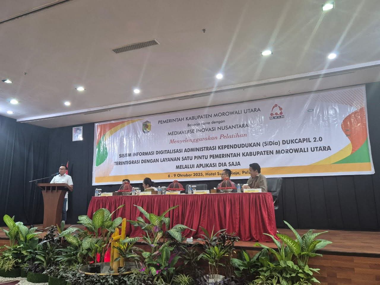 Palu, Bupati Morowali Utara Dr. dr. Delis Julkarson Hehi, MARS, secara resmi meluncurkan Sistem Informasi Digital Administrasi Kependudukan (SiDia) Dukcapil 2.0 yang telah terintegrasi dengan Aplikasi “DIA SAJA” (Digitalisasi Informasi dan Administrasi–Satu Aplikasi Jangkau Semua). Peluncuran tersebut dirangkaikan dengan pembukaan Pelatihan SiDia Dukcapil 2.0 yang berlangsung di Hotel Sutan Raja, Kota Palu, pada 6–9 Oktober 2025.