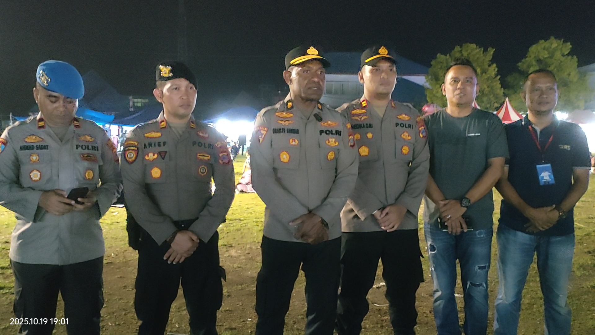 Kompol Carles Karimar dalam keterangannya menyampaikan bahwa pengamanan dilakukan secara menyeluruh di seluruh titik kegiatan, mulai dari pintu masuk, panggung utama, hingga area parkir.