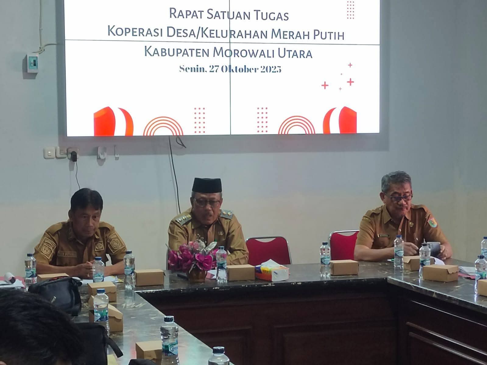 Morowali Utara, Wakil Bupati Morowali Utara, H. Djira K, S.Pd., M.Pd., memimpin rapat Satuan Tugas (Satgas) Koperasi Desa/Kelurahan Merah Putih.