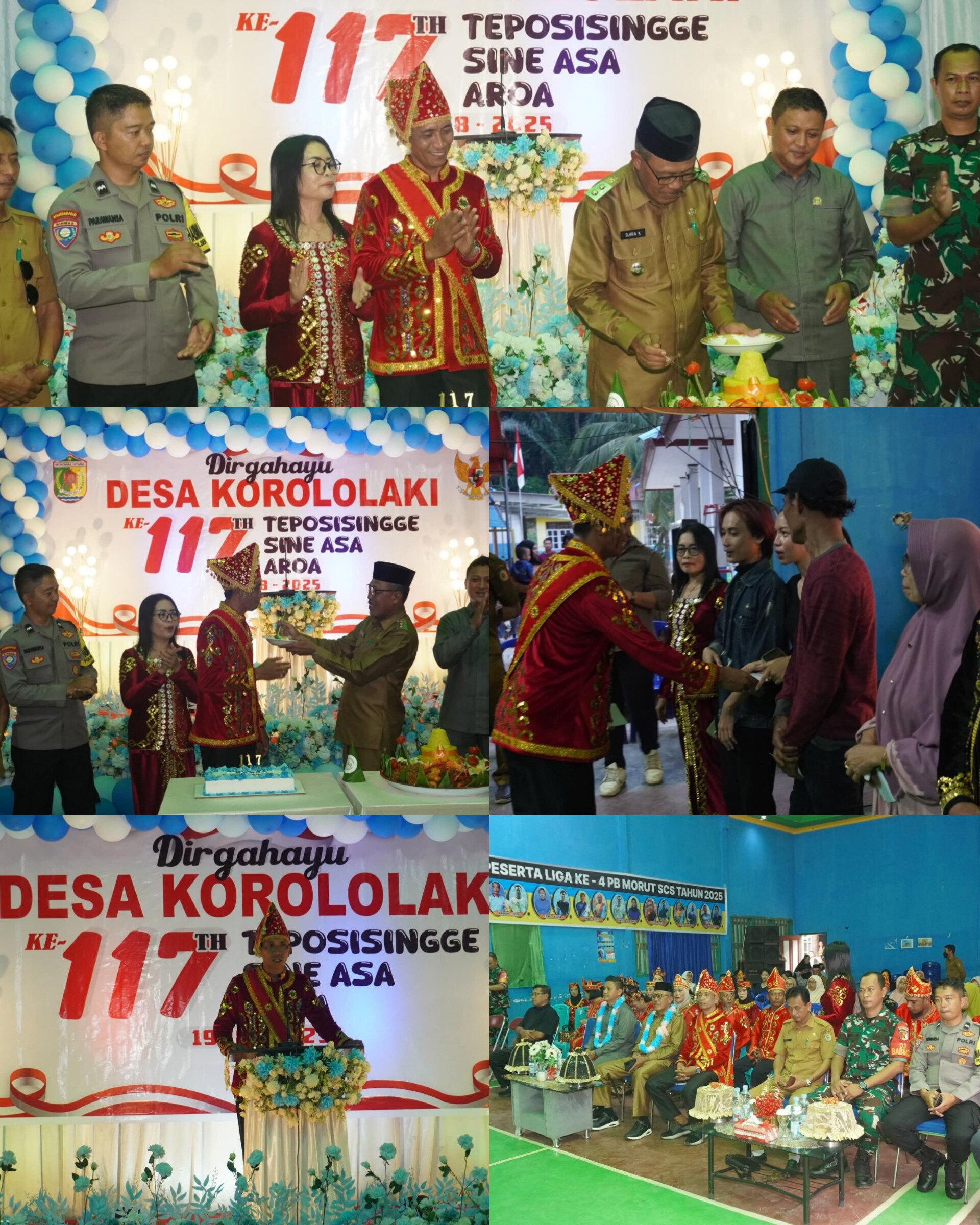 Acara kemudian dilanjutkan dengan prosesi pemotongan tumpeng dan peniupan lilin sebagai ungkapan syukur atas hari jadi Desa Korololaki yang ke-117.
