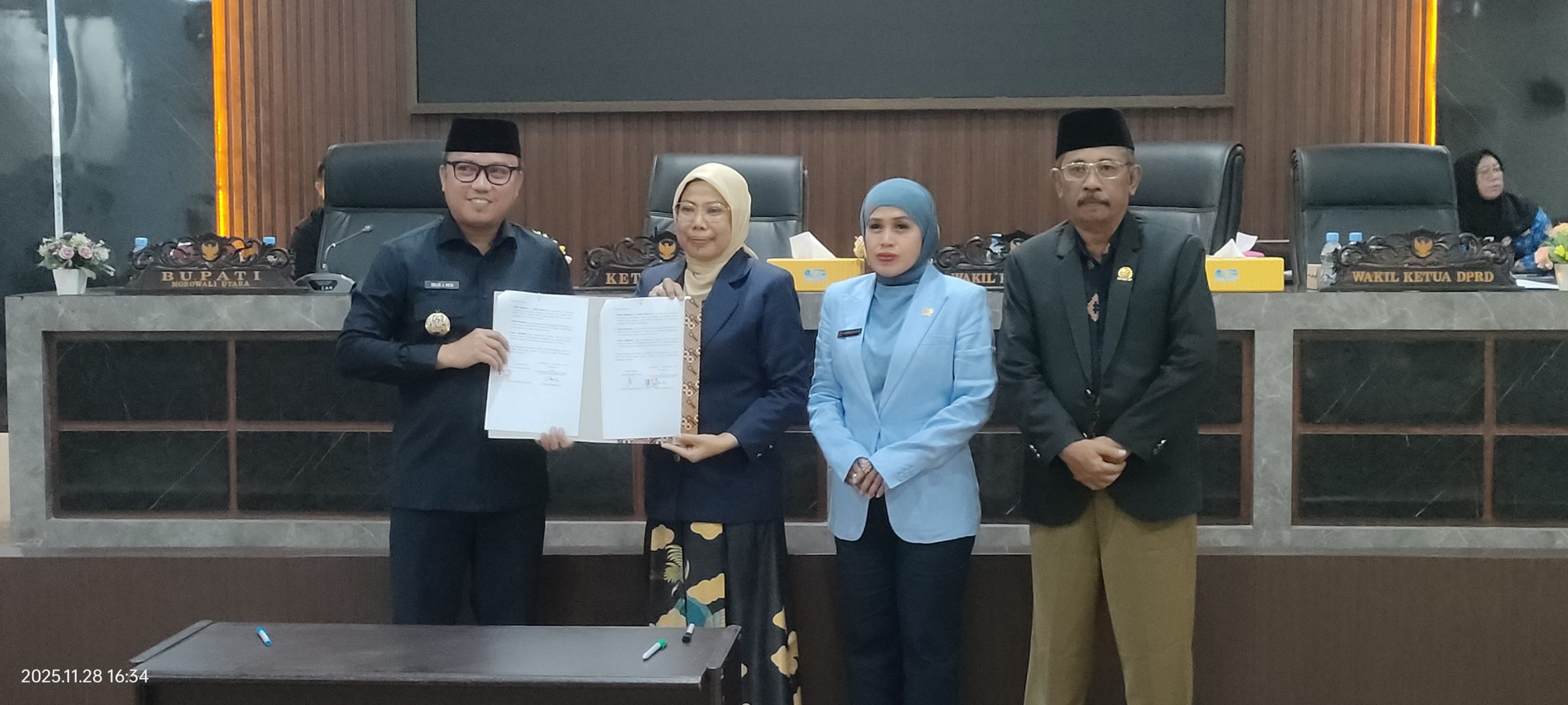 Rapat paripurna kemudian menyetujui Rancangan APBD 2026 menjadi Peraturan Daerah yang ditandai dengan penandatanganan persetujuan bersama antara Bupati dan Pimpinan DPRD.