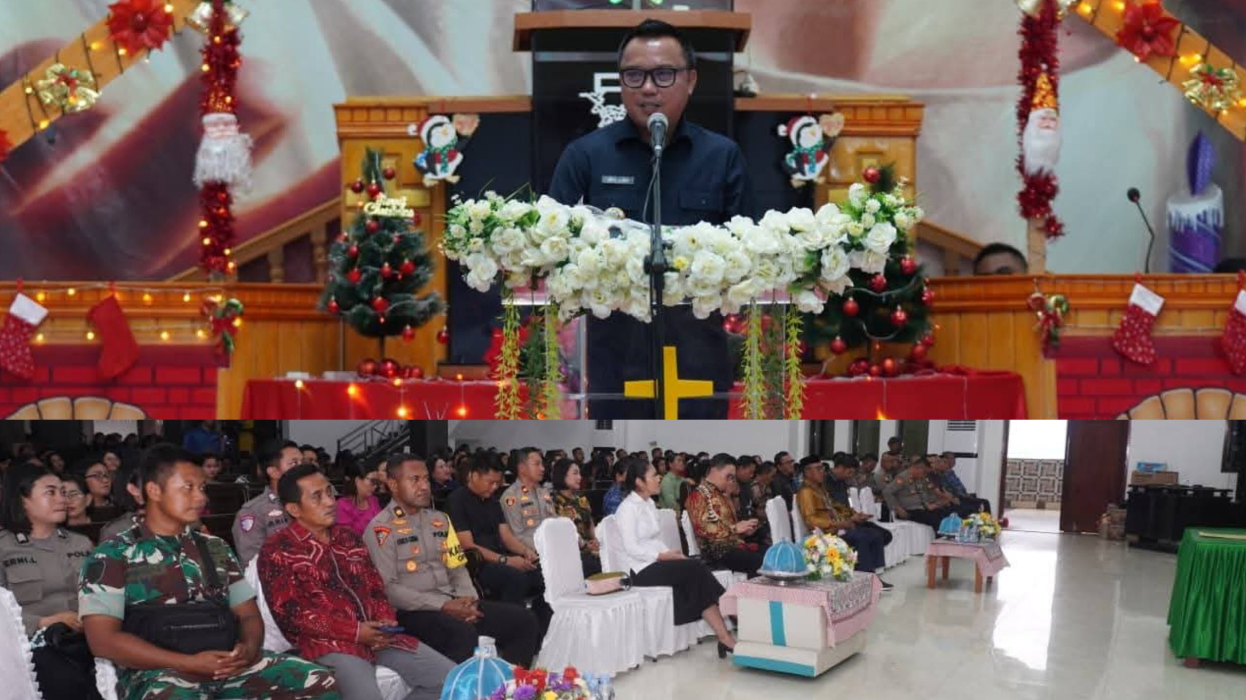 Morowali Utara, Pemerintah Daerah Kabupaten Morowali Utara bersama Polri, TNI, Kejaksaan Negeri, Kementerian Agama, BNN, Kantor Pertanahan, serta Badan Musyawarah Antar Gereja (BAMAG) melaksanakan Perayaan Natal Lintas Instansi Tahun 2025. Kegiatan yang digelar dengan penuh sukacita ini dihadiri oleh Bupati Morowali Utara Dr. dr. Delis Julkarson Hehi MARS dan Wakil Bupati H.Djira K, S.Pd, M.Pd, anggota DPD RI Dapil Sulteng sekaligus Ketua TP-PKK Morowali Utara Febriyanthi H.D.J Hehi, S.Si., Apt., serta para pejabat dan tamu undangan dari berbagai instansi.
