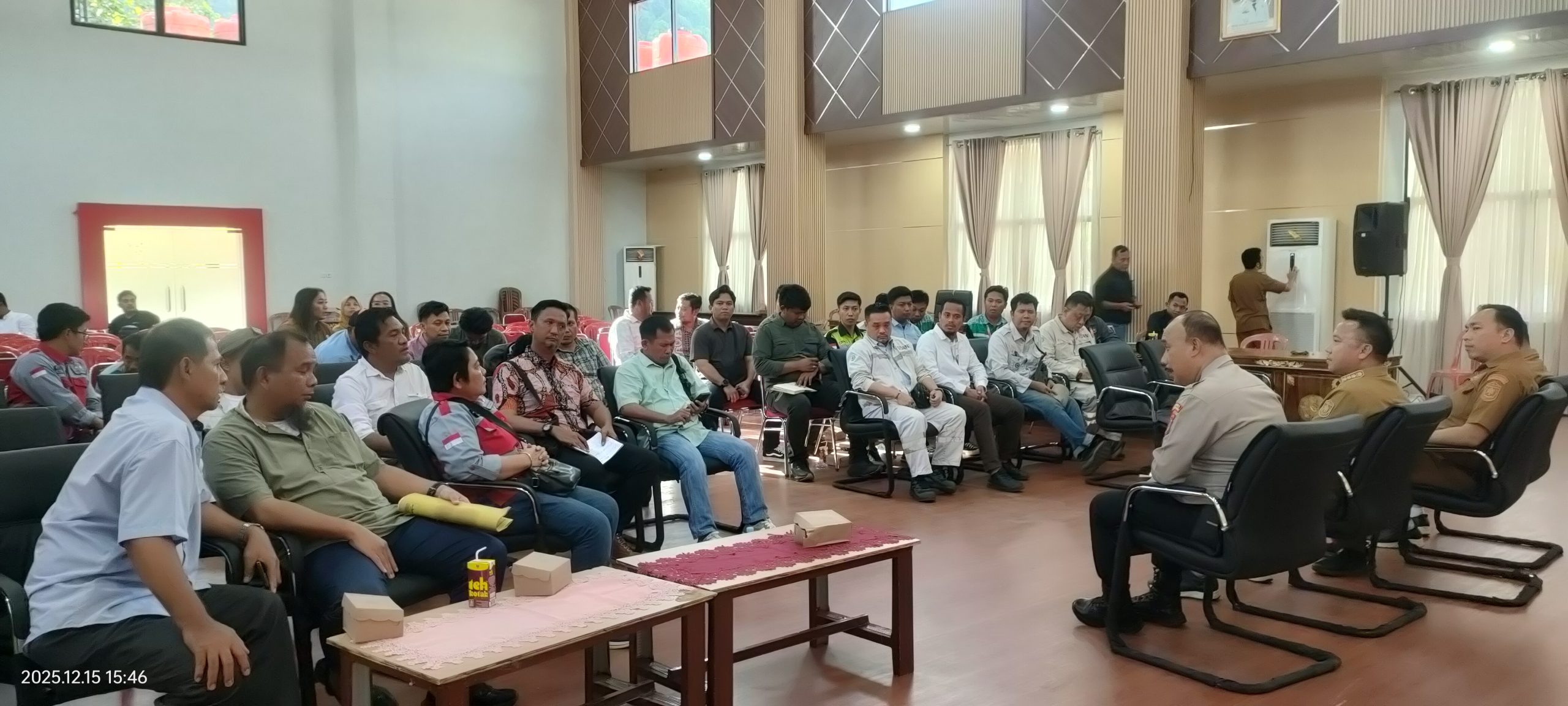 Morowali Utara, Bupati Morowali Utara, Dr. dr. Delis Julkarson Hehi, MARS, memimpin Rapat Koordinasi (Rakor) Mitigasi Bencana bersama perusahaan pertambangan yang beroperasi di wilayah Kabupaten Morowali Utara. Kegiatan tersebut berlangsung di Ruang Pola Kantor Bupati Morowali Utara, Senin (15/12/2025), dan dihadiri belasan Kepala Teknik Tambang (KTT) dari berbagai perusahaan.