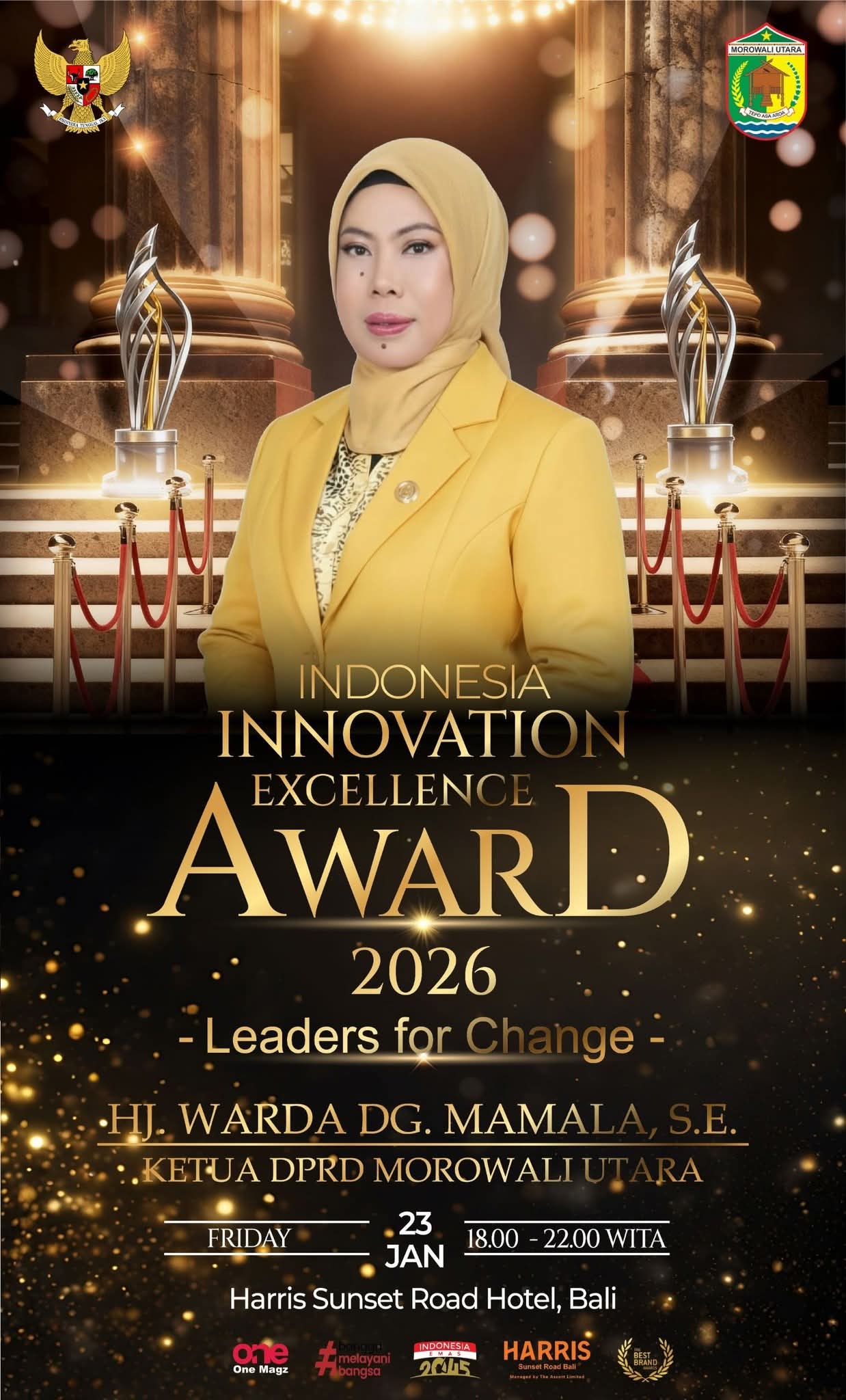Morowali Utara, Ketua DPRD Kabupaten Morowali Utara, Ibu Warda Dg. Mamala, S.E., kembali menorehkan prestasi membanggakan di tingkat nasional. Ia terpilih sebagai nominasi penerima Indonesia Innovation Excellence Award 2026 yang diselenggarakan oleh ONE Magazine Indonesia, sebuah majalah nasional yang secara konsisten memberikan apresiasi kepada figur-figur inspiratif dari berbagai sektor.