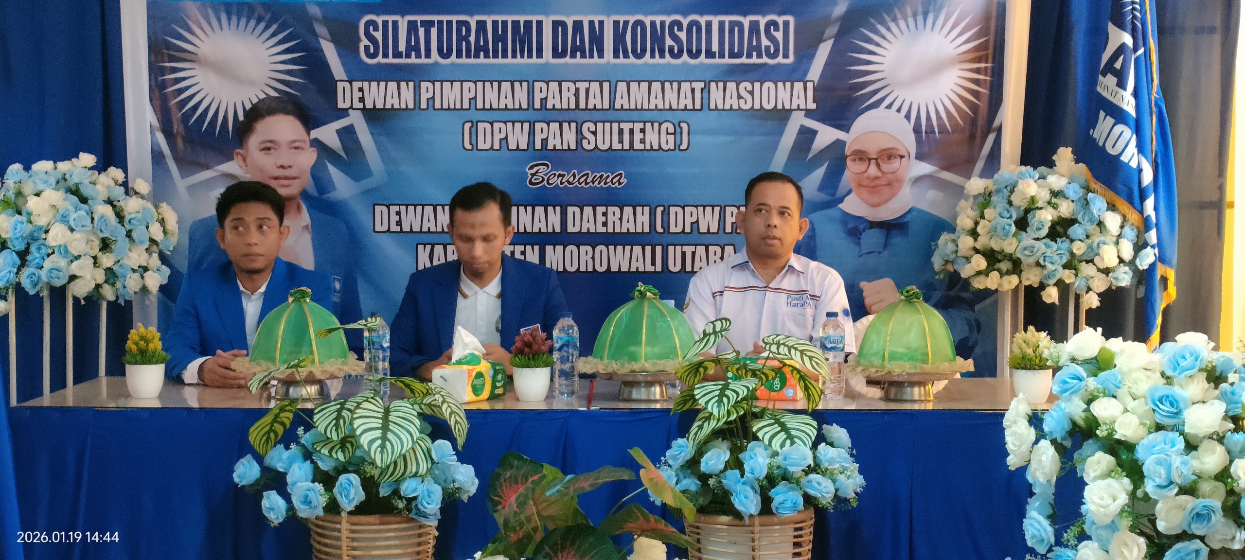 Morowali Utara, Dewan Pimpinan Wilayah (DPW) Partai Amanat Nasional (PAN) Sulawesi Tengah menggelar kegiatan silaturahmi dan konsolidasi bersama Dewan Pimpinan Daerah (DPD) PAN Kabupaten Morowali Utara. Kegiatan yang bertujuan memperkuat soliditas partai serta menyamakan langkah menghadapi agenda politik ke depan ini digelar di Kolonodale, Senin (19/1/2026).