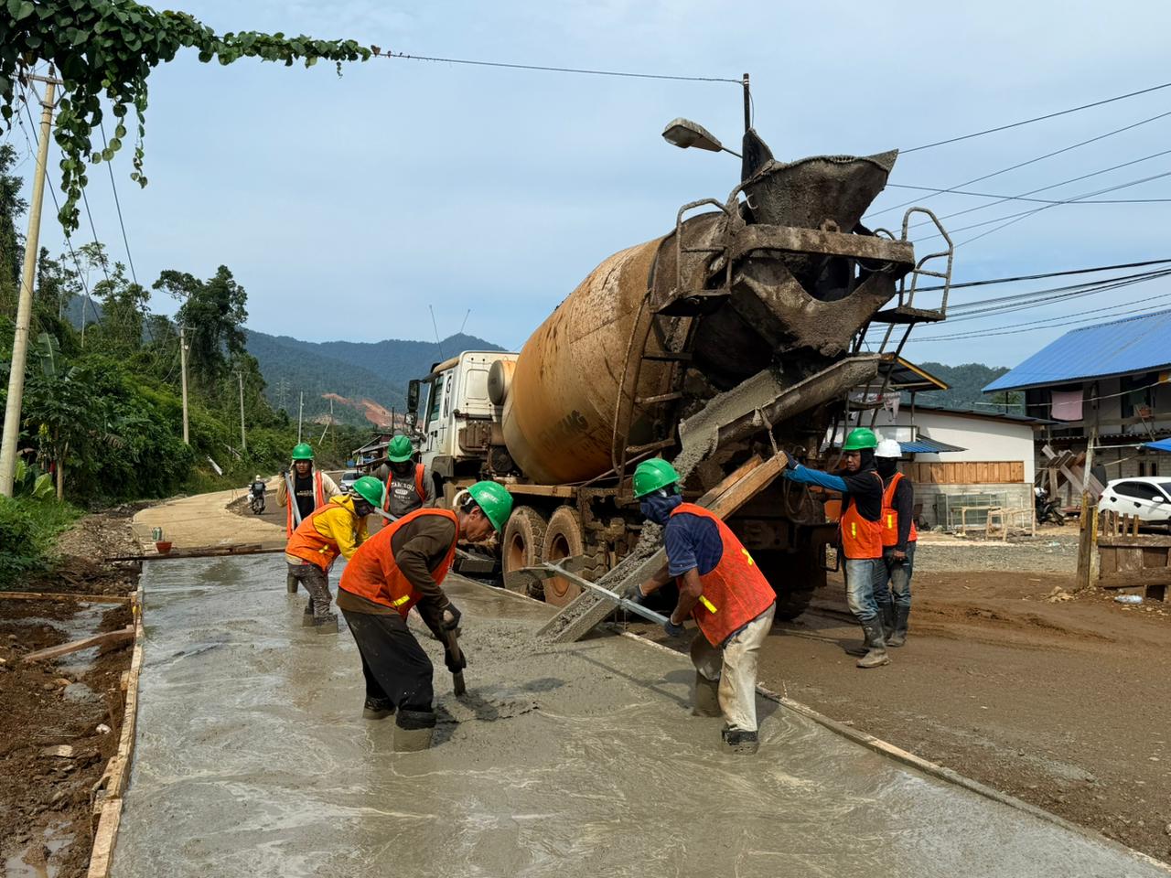 Ia menjelaskan, pembangunan jalan dilakukan secara bertahap, mulai dari pembersihan badan jalan, perataan tanah, hingga proses pengecoran. Seluruh tahapan dikerjakan dengan standar kualitas tinggi guna memastikan daya tahan jalan dalam jangka panjang.