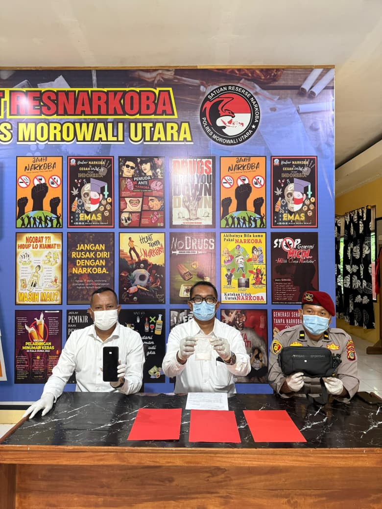 “Tersangka berinisial TAS alias T, warga Kabupaten Morowali, diamankan saat singgah di salah satu kios di Jalan Trans Sulawesi, Desa Korowou, Kecamatan Lembo. Ia diduga hendak melintas dari Kota Palu menuju wilayah Morowali Utara,” ujarnya saat konferensi pers di ruang Satresnarkoba.